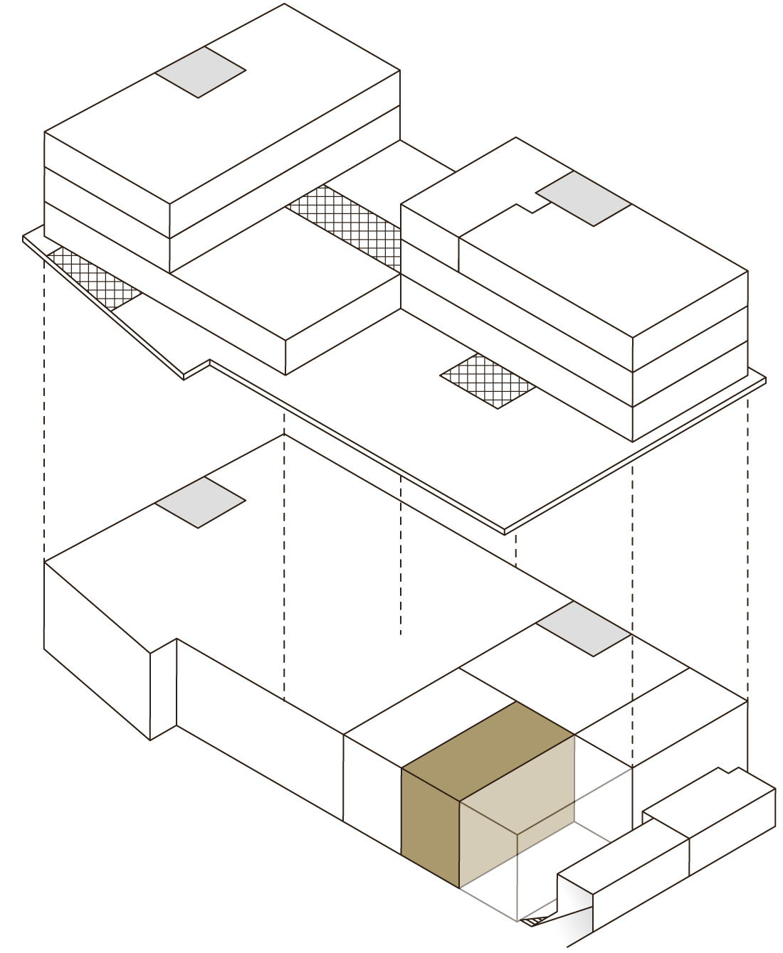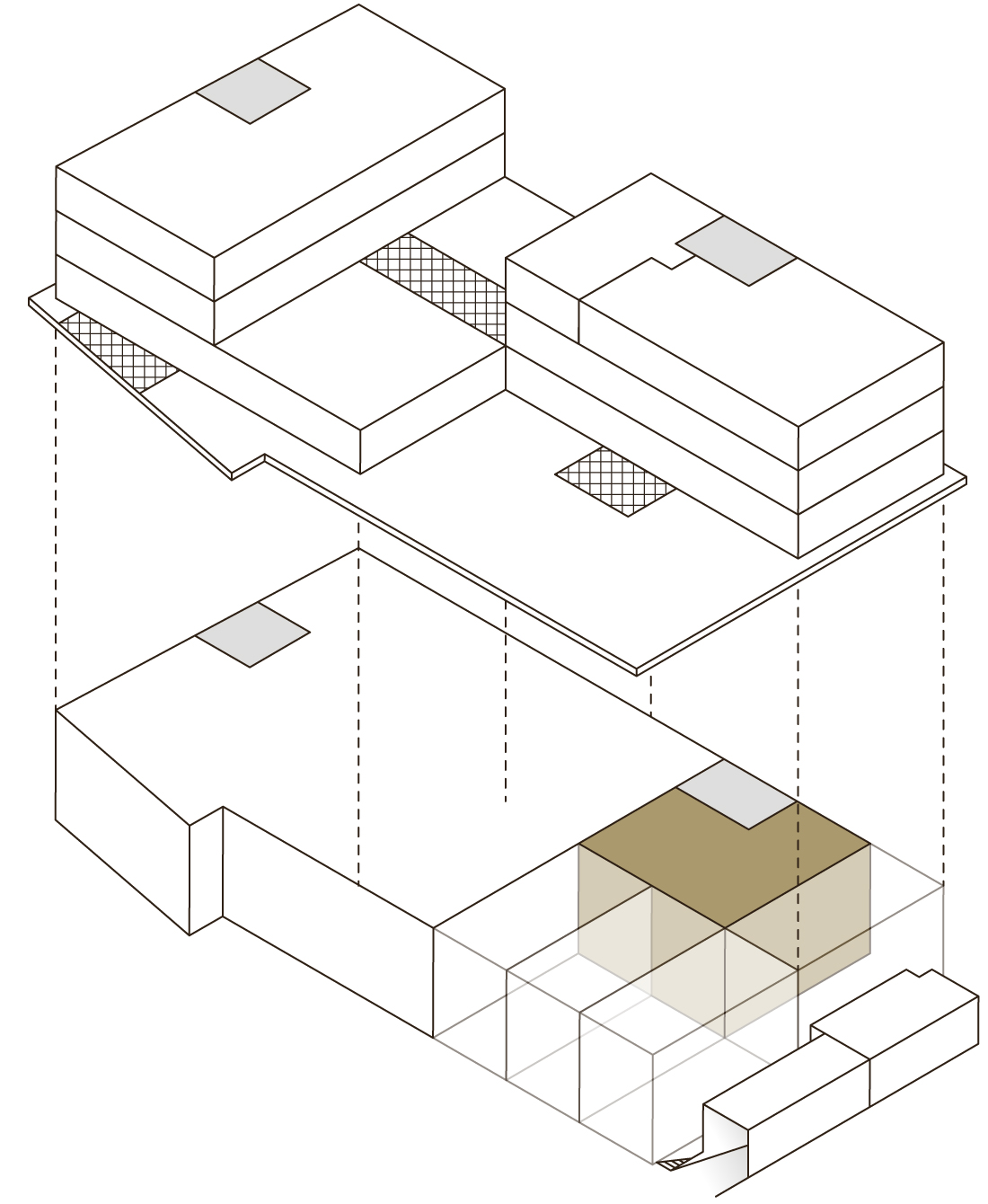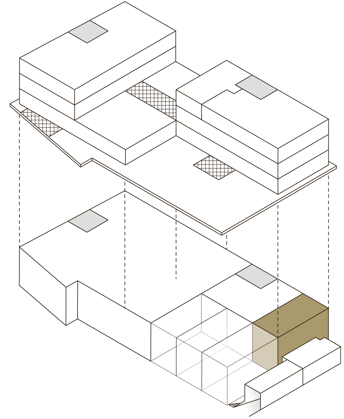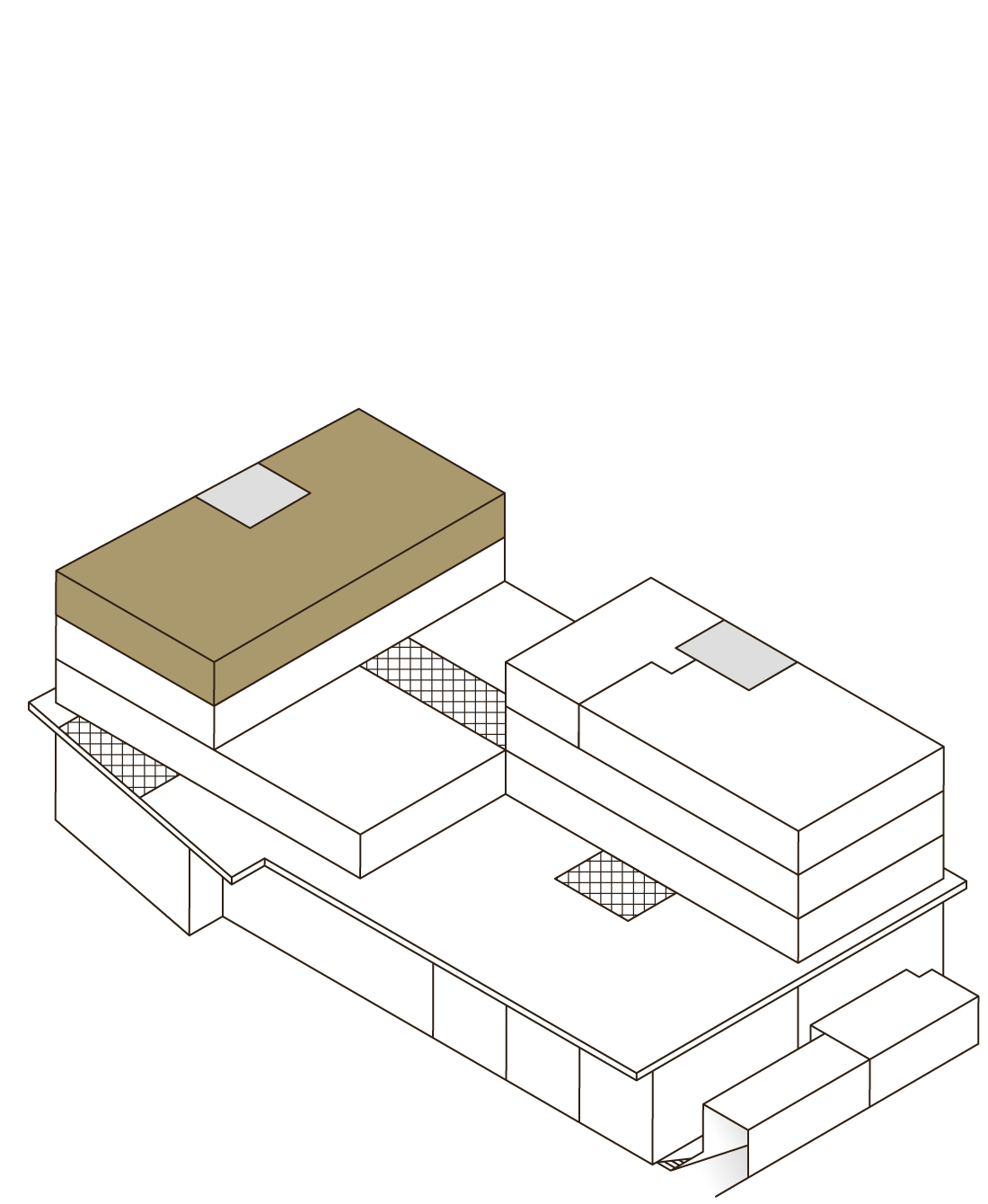 Der längsgezogene Holzbau. errichtet mit Holz aus heimischen Wäldern, erstreckt sich über vier Geschosse und die Zugänge in die Flächen erfolgen über zwei Treppenhäuser (Nord und Süd bzw. Heuwinkelweg 2 und 4). Die KMU Boxen verfügen über direkte, befahrbare Zugänge. Im 1. und 2. Obergeschoss stehen den Mietern Aussenbereiche in Form einer Terrasse zur Verfügung.
