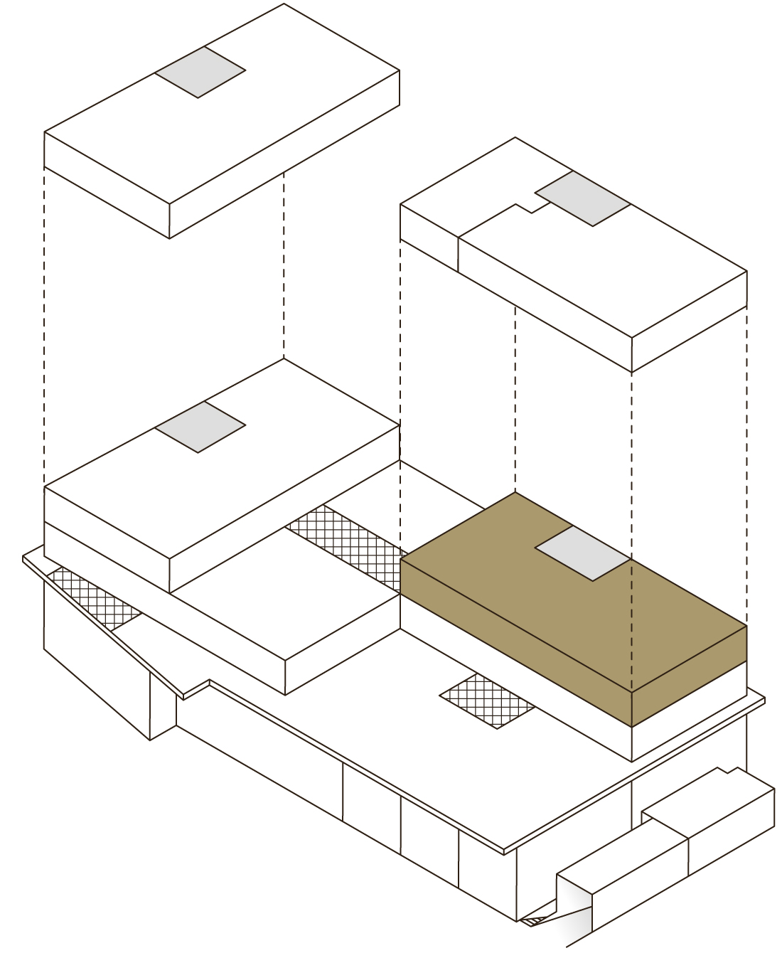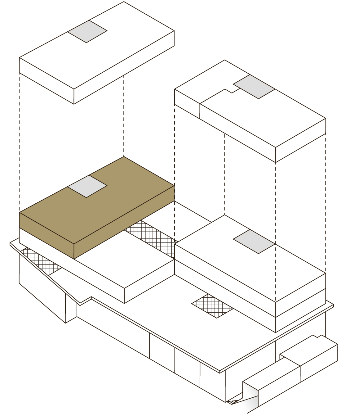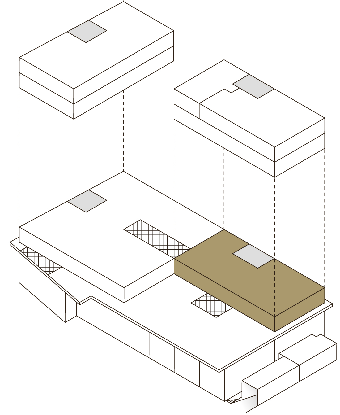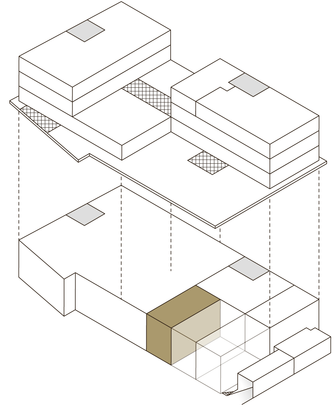 Der längsgezogene Holzbau. errichtet mit Holz aus heimischen Wäldern, erstreckt sich über vier Geschosse und die Zugänge in die Flächen erfolgen über zwei Treppenhäuser (Nord und Süd bzw. Heuwinkelweg 2 und 4). Die KMU Boxen verfügen über direkte, befahrbare Zugänge. Im 1. und 2. Obergeschoss stehen den Mietern Aussenbereiche in Form einer Terrasse zur Verfügung.